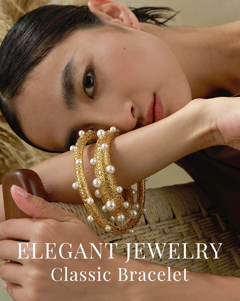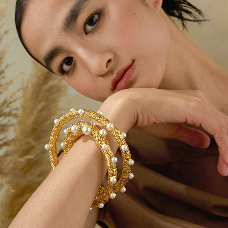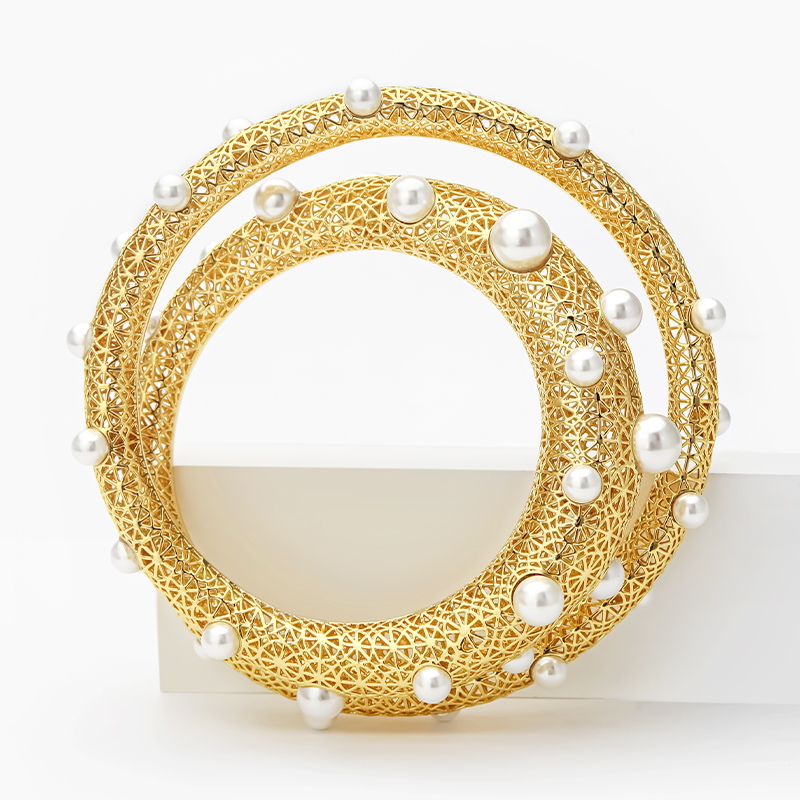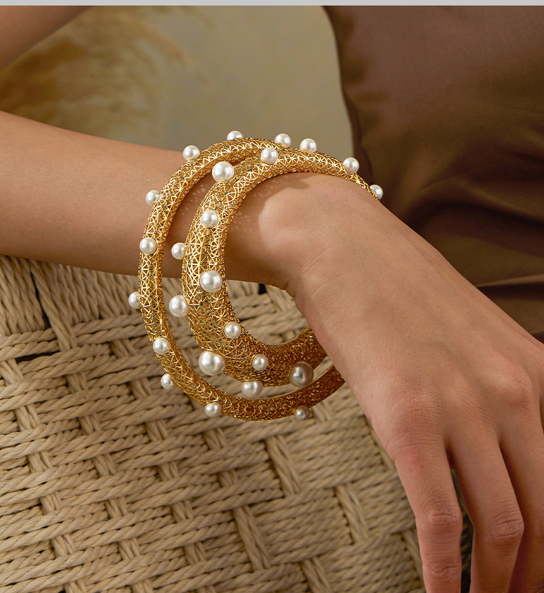 Hollow Out Pearl Paved Bangle