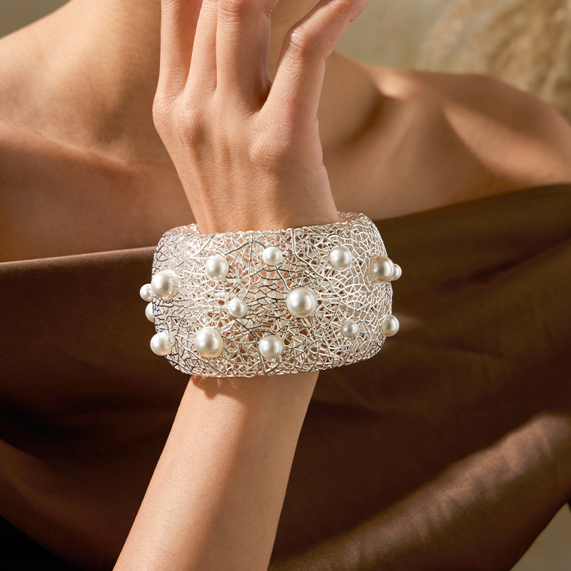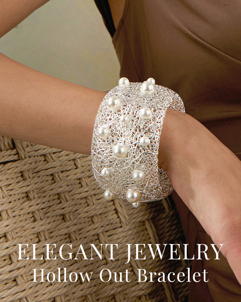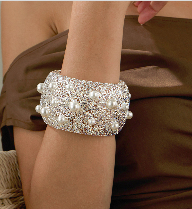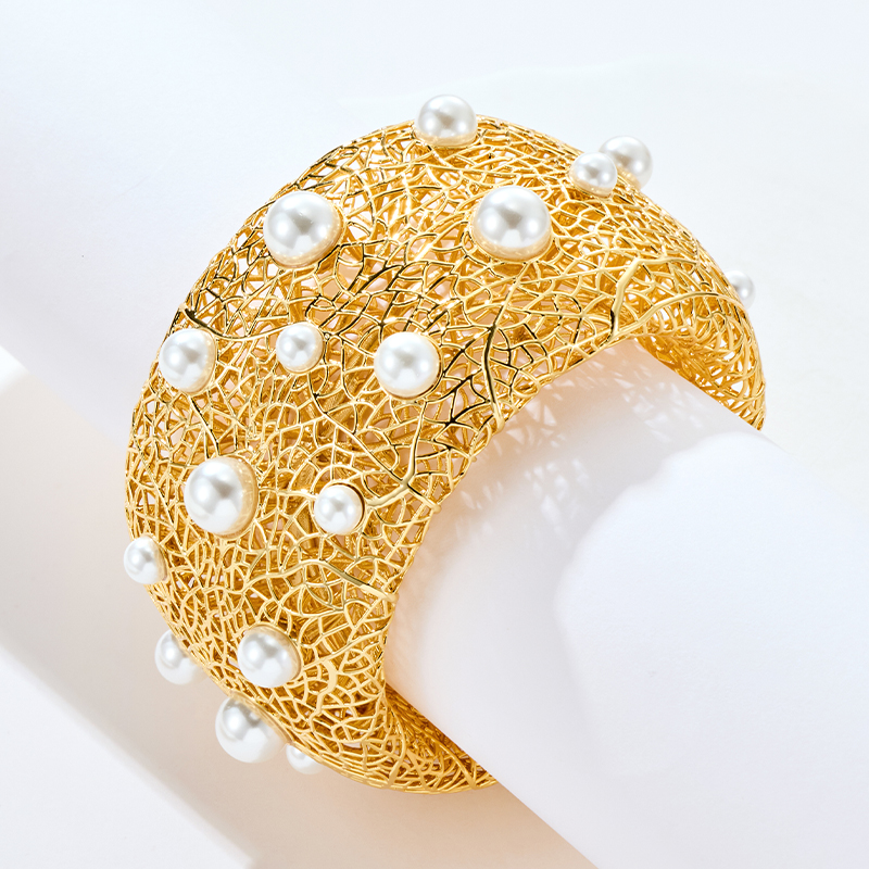 Pearl Paved Wide Hollow Out Bangle