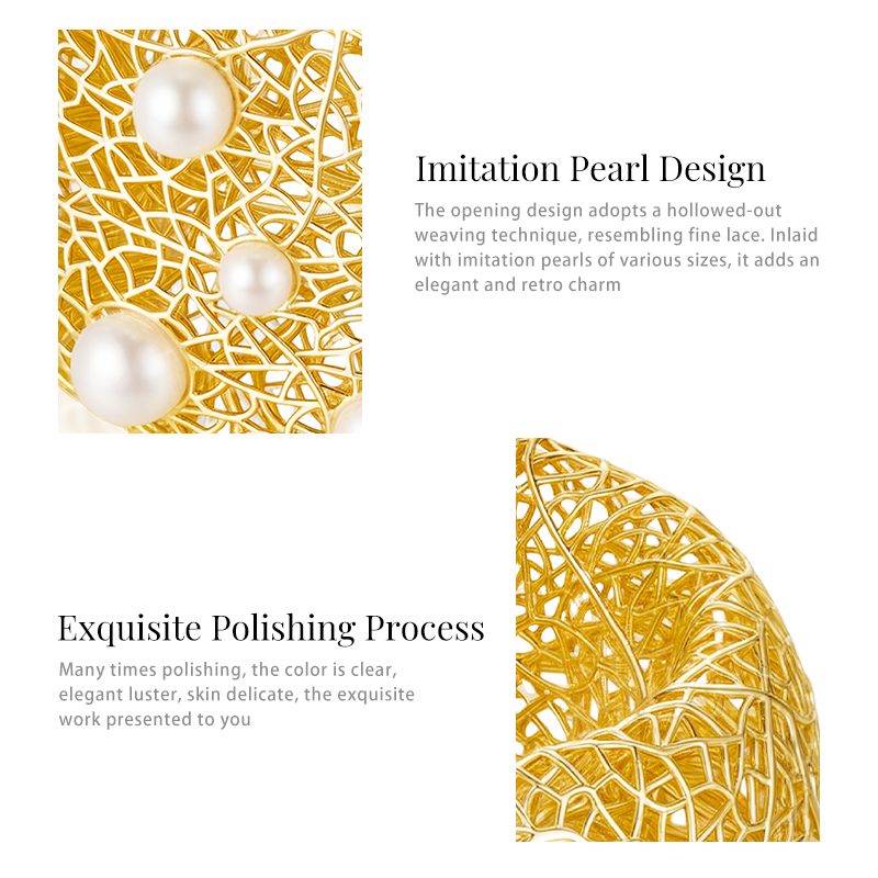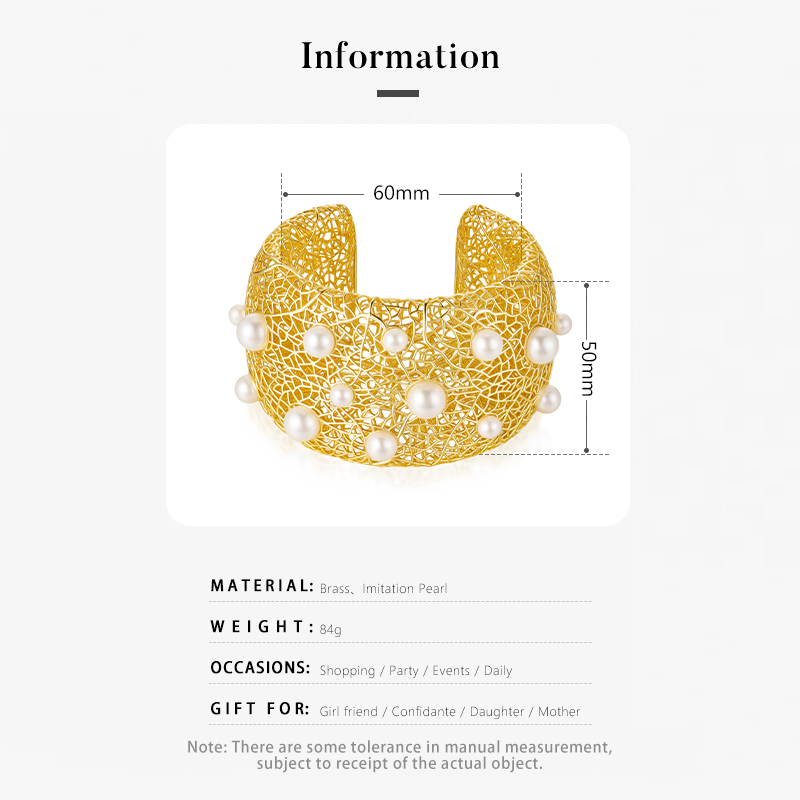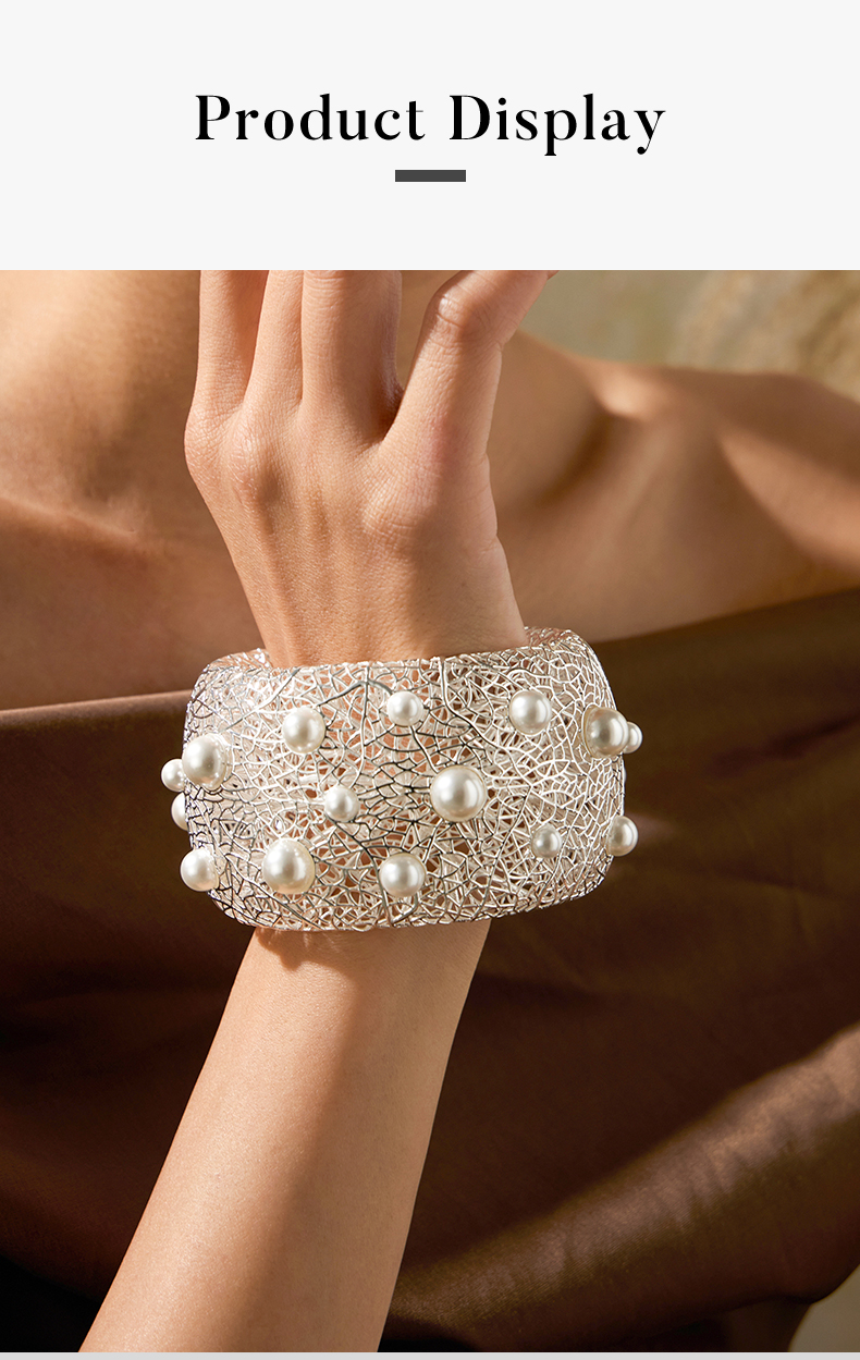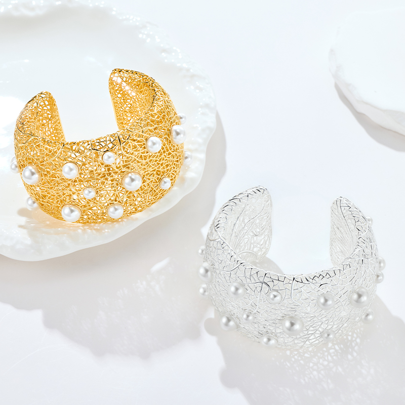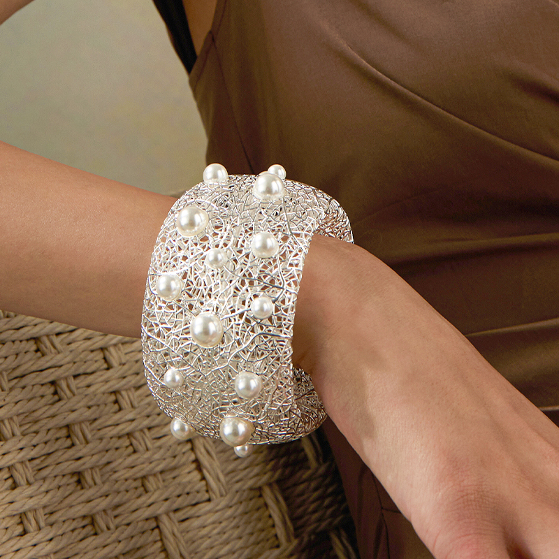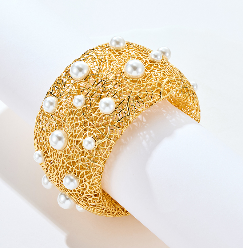 Pearl Paved Wide Hollow Out Bangle quantity